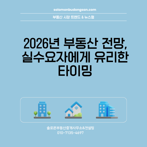 결론부터 말하면, 2026년은 투자자보다 실수요자가 더 유리한 구조가 형성되는 시기입니다.